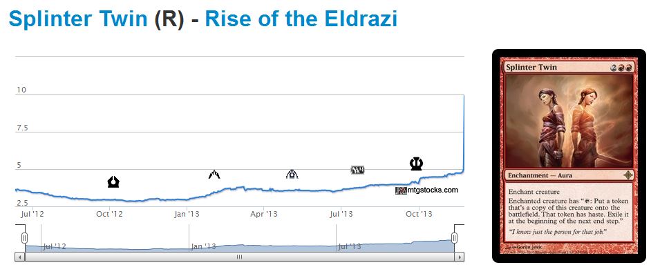 There are two categories of cards I’m keeping my eyes out for during the holiday sale season: Modern and Theros temples. The former because we will see many more instances of Splinter Twin-like spikes in the next few months. I will be closely watching for deals on Spellskite, Birthing Pod, Scars fastlands, Worldwake manlands, and an array of other cards prone to spiking come Modern season.