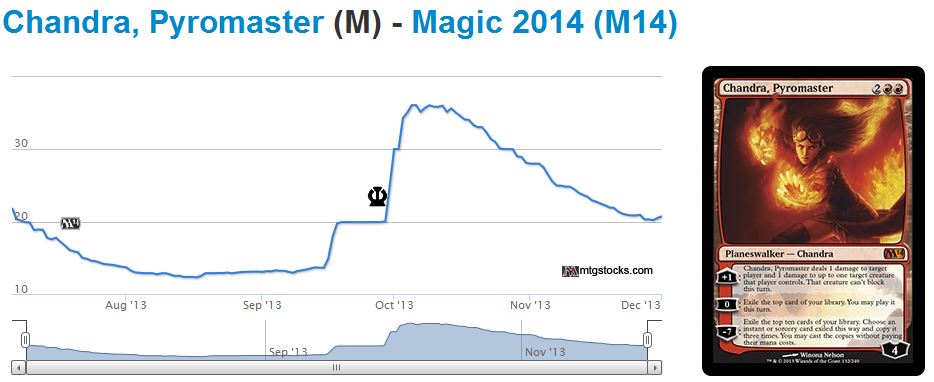With Standard rotation we saw speculation all over the place. Planeswalkers jumped after seeing tournament play at major events, removal spells became more costly, etc. Clearly cash was pouring into the format as everyone wanted their chance at some profit. Hopefully they sold in time.