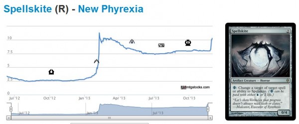 The first people to recognize how cheap these two Modern staples were made the highest profit. But if this was so obvious, why didn’t the spike in price take place earlier? Why did Spellskite even drop in price at all? Why didn’t it just go higher and higher?
