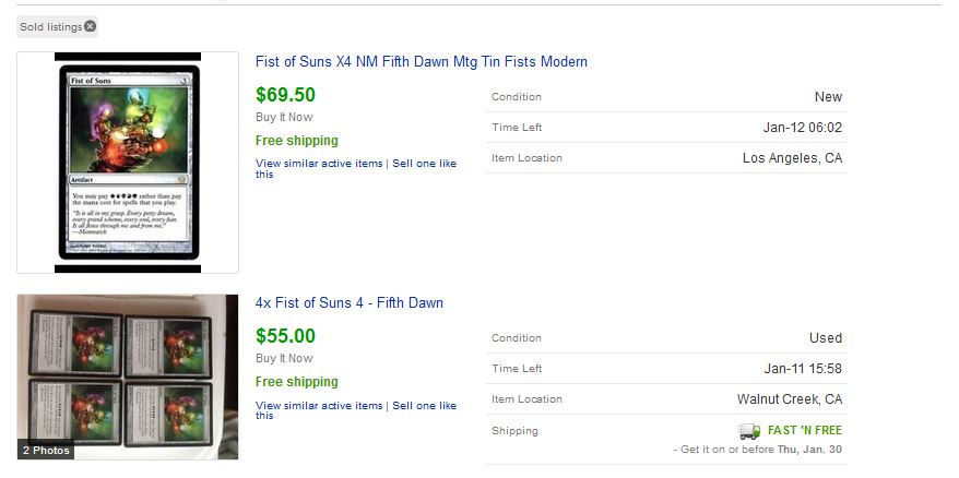 The world of MTG finance isn’t set up as conveniently. I have no option to set a limit sell price on my Fist of Suns so that the moment they hit a peak during a spike, my copies sell. Believe me, if this was an option I would have been ecstatic…like these two sellers probably were: