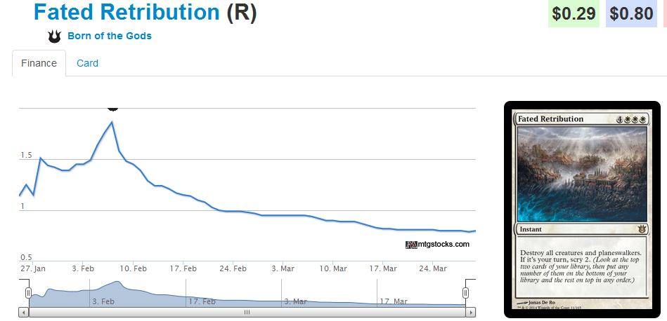 My plan will be to acquire copies of the best wrath effect in Theros block once Journey Into Nyx is released. If that happens to be Fated Retribution then so be it. I’ll buy a few sets for $10 and test my “wrath effect hypothesis” yet again.