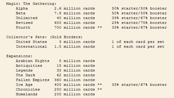 Age alone isn’t why cards from these older, flavorful sets are harder to find. Being from such old sets also means their print runs will have been significantly lower than sets of today. Fortunately for sets this old, finite print run information actually exists!