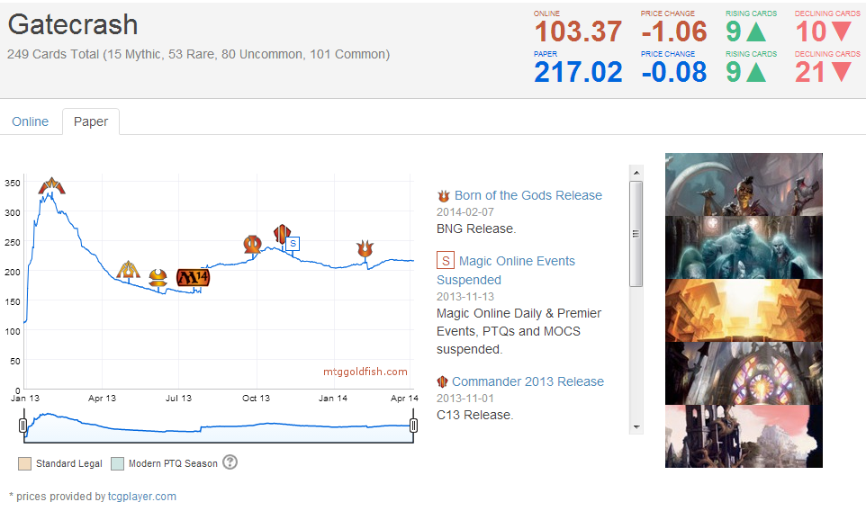 3. Remember points one and two during the summer doldrums, when prices are lowest and hype is passed. Iâll be looking closely at Journey into Nyx (in addition to Theros and Born of the Gods) during that time, as playable cards from spring sets are most likely to blow up big during the fall.