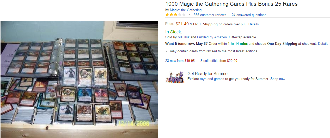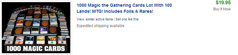 If you pay $5/thousand cards for bulk, throw in $2.50 for bulk rares and sell for $22, you're making real money. If you are in the "Fulfillment by Amazon" program, Amazon is going to take a big bite, but they are also going to deal with shipping to the consumer.