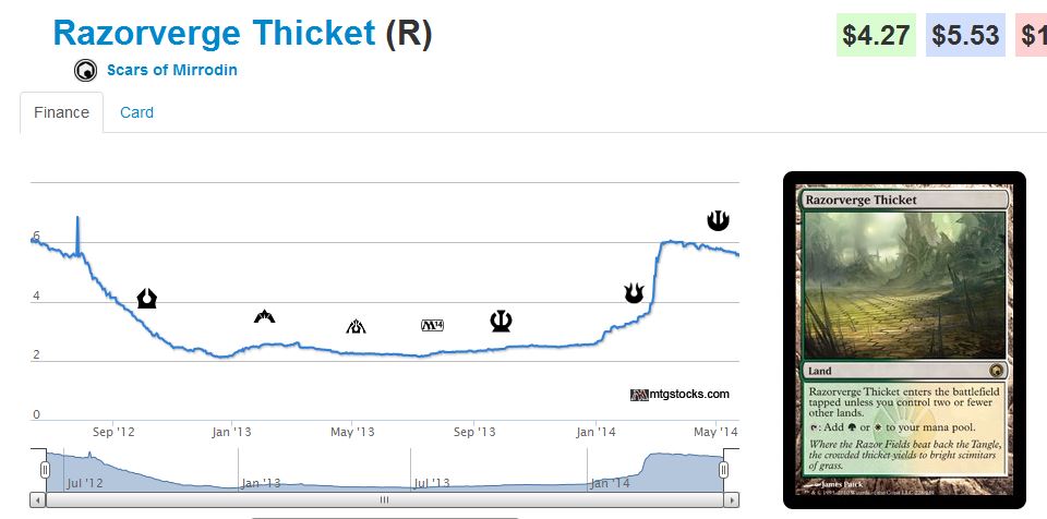 Just make sure you unload them when they hit their local maxima because there could be another large sell-off at the end of this Modern season. Modern Masters 2 will be a thing, and other reprint potentials means the fear that drove prices down over the last few months will be magnified.