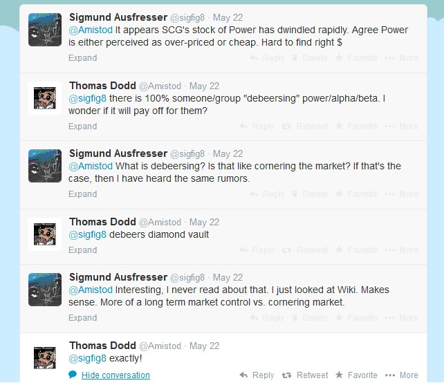 Vintage Masters driving up interest in Paper Vintage could also be a culprit here. But savvy speculators could be hoarding a few extra pieces of Power in anticipation of further increases – perhaps not a concerted effort to control the market but a group of wise investors hoping to make significant returns on their investment?