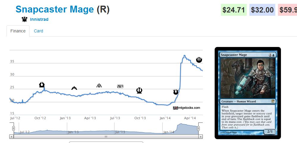 As recently as GP Cincinnati I happily buylisted Snapcaster Mages at $27 + 25% trade-in credit for some played Dual Lands. The decision has paid off nicely.