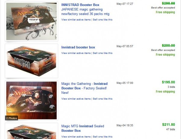 Guess how many stores listed Innistrad Booster Boxes on their buy list? When I specifically asked about selling Innistrad Boxes, the number offered would be below what I’d net from eBay after fees and shipping. Ouch.