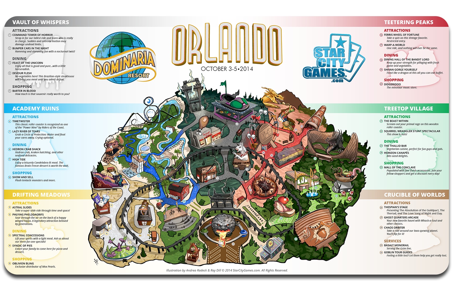 Coming from someone who's done the Disney World thing in Orlando several times, I really appreciate the idea behind this playmat. It's a brilliant idea and executed fairly well. It's possible a little larger art and a little less text could have made the attractions "pop" a little more, but really that's just nitpicking since this is one one of the top two or three playmats I've seen this year.