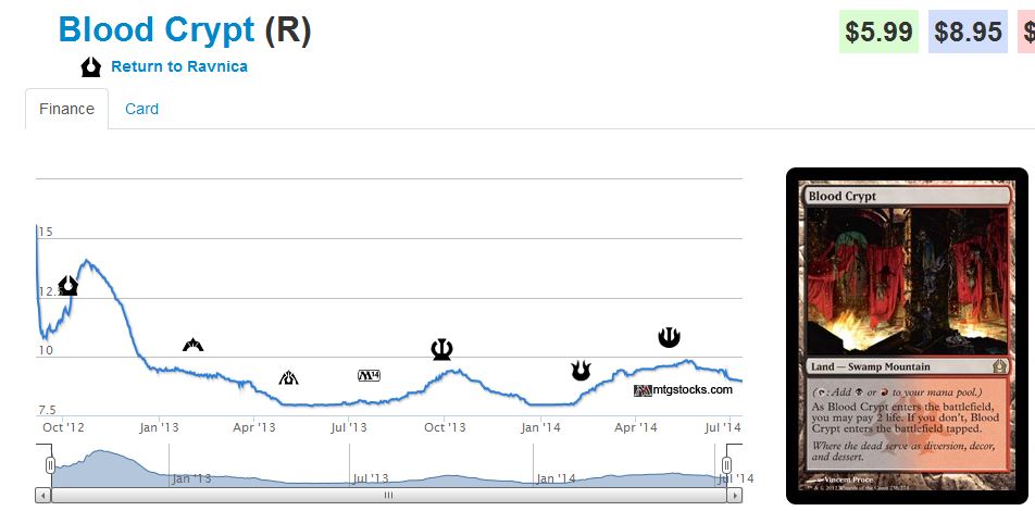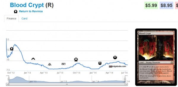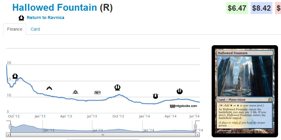 In that same article I promised an update on my Shock Lands. The jury is still out on these crucial Modern mana-fixers. Through this major price pullback on Modern cards, I continue to have an internal struggle on whether or not to hold my 91 Shock Lands as we navigate through strong headwinds: Standard rotation, Modern PTQ season ending, and continuous risk for reprints (no matter how unlikely).