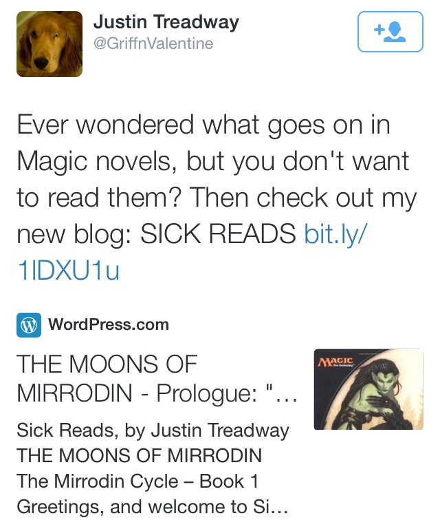 I've read the first couple posts on the site, and it's kind of like CliffNotes for MTG books—but with an FJM element as well (all who understood that reference without clicking the link are my new favorite readers, by the way). The breakdowns are informative and humorous, but most importantly, they're quick reads.