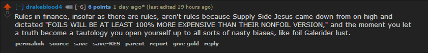 I think the post OP made is pretty logically sound. This was just an average r/mtgfinance reader who applied some of the rules of finance they had learned to a situation, saw a discrepancy and alerted everyone. I'm also going to conclude that they bought quite a few foil copies from TCG Player, but more on that later.