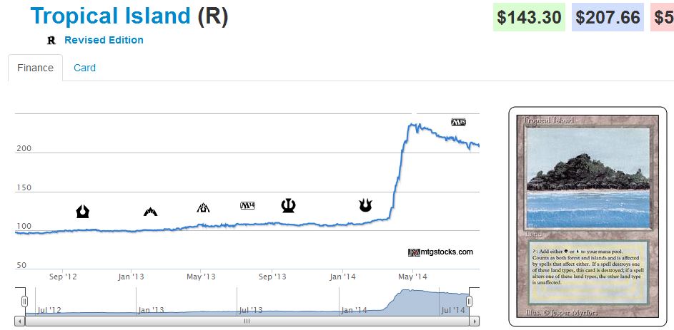 My top focus areas right now remain well-priced Mana Drains, Tropical Islands and Tundras, with a few Temples thrown into the mix for good measure. I’m sure this will shift some come the fall when prices move around again. But for now, I like where I’m at and, other than my undesirably large Modern position, I am quite pleased with my shift in focus. Hopefully the moves pay out as we close out 2014!