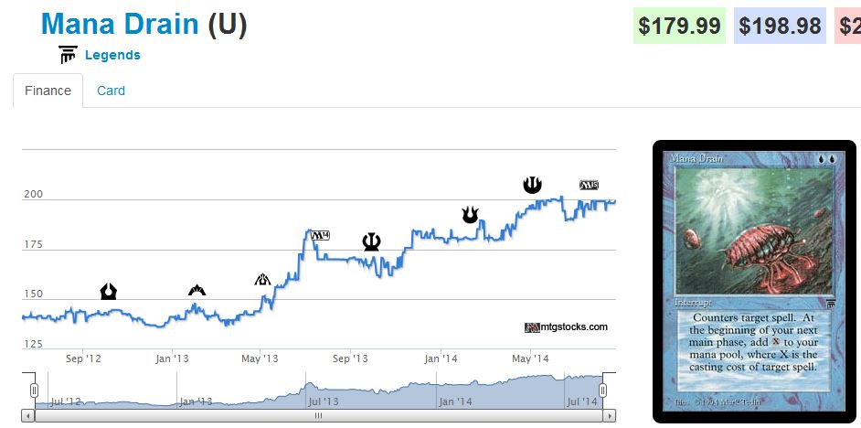 Italian Mana Drains are now selling for $100+ on eBay. A couple months ago you could buy a played English copy for a similar price. Star City Games has been sold out of Mana Drains for an eternity now and a price increase is inevitable.