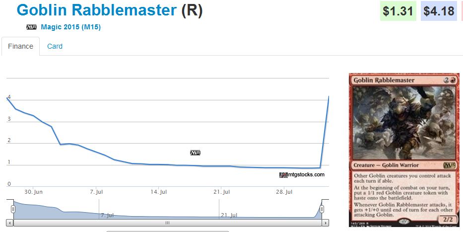 It’s not just Casual and Modern formats that are driving price spikes. Check out what happened to Goblin Rabblemaster this past weekend thanks to multiple deck appearances at the Pro Tour.