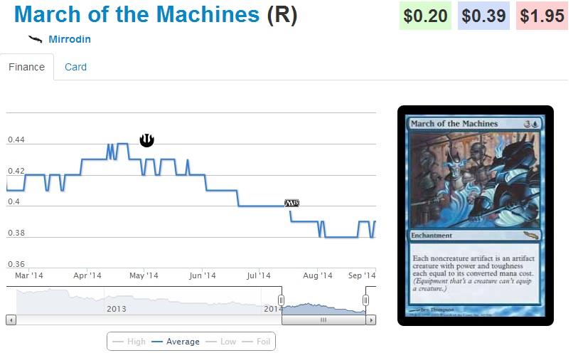 Our fourth example is March of the Machines. This card showed up on March 24th, 2014 in this article: (http://www.channelfireball.com/articles/woo-brews-modern-march-madness/).