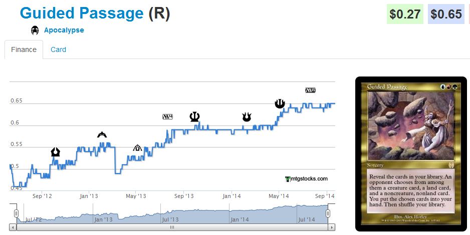 And if you really want to get targeted, you could always focus on foil versions of some of these cards. Numot, the Devastator may be on sale at Star City Games for just $0.50, but NM foil copies are $15.99! AND there are only a few less-than-perfect copies in stock right now. Barring a re-appearance of these cards in Khans block, I only see these foils heading higher. Khans block can be that exact catalyst to send prices higher. Heck, even foil Guided Passage retails for $12.99!