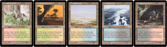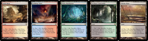One of these things is not like the other. Maybe it's just me, but I think the fetch lands have traditionally featured a more evocative art style than other MTG lands, and it disappoints me that Wizards has abandoned this practice.