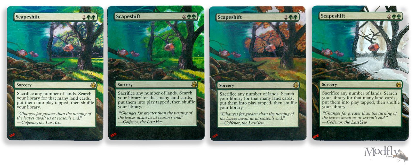 It calls back to the days of Mishra's Factory coming in different seasons, and it's awesome. Also, the card in question here, Scapeshift, is all about lands. Land = seasons. Get it?