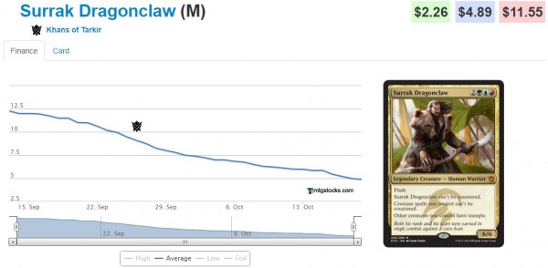 #5 Surrak Dragonclaw (-18.5%) - If you ever needed a reason not to pre-order (despite the fact that almost everyone on this site reiterates this sentiment every new set), here's another great example. This guy has just continued to go down since release. He hasn't found a home in anything but sideboards.