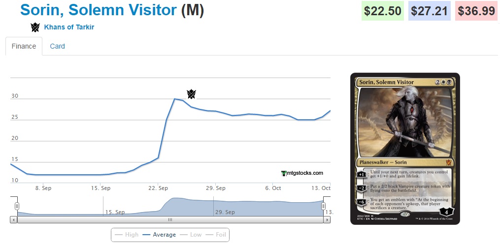 What's important to note is that the two cards you'd most likely have assumed to breakout didn't: the planeswalkers. While both had solid showings, neither jumped up in price (likely because they already were expensive). Sarkhan actually dropped a little, while Sorin did make a slight gain (but was by no means a jump).