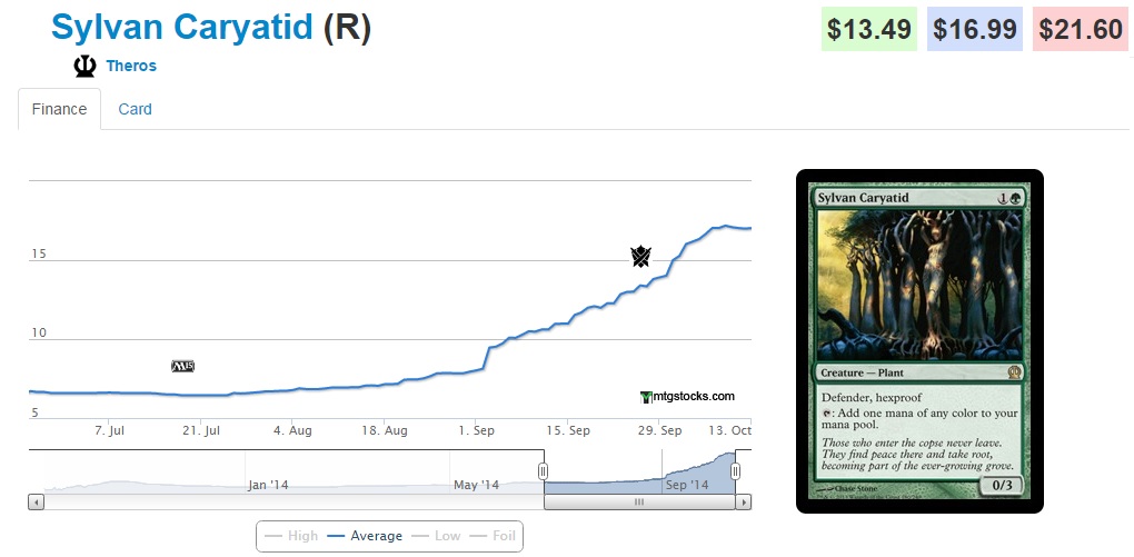 The best mana fixer we have in Standard right now showed up as a four-of in the finals. Helping to ramp out turn three Siege Rhinos all day, Caryatid proves that one turn faster makes a huge difference. However it's important to note that the price of Caryatid didn't seem to move up much with its strong PT showing, most likely because it was already expected to show up in high numbers.