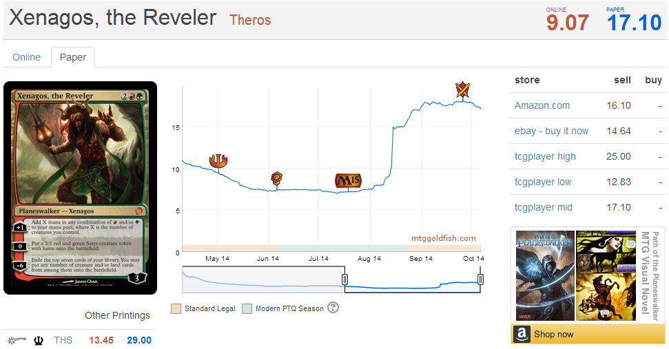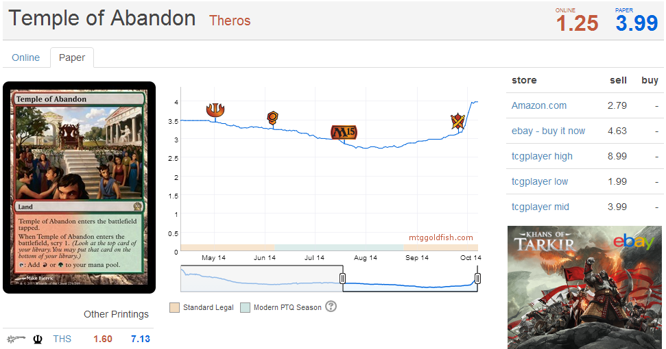 At the end of July, I felt like the best two cards to target moving forward were Xenagos, the Reveler and Temple of Abandon. Unfortunately, I was unable to go as deep as I wanted due to the birth of my son, but I hope you managed to make some money.