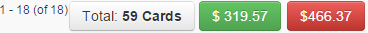 Do this for every card, and then you can click the name of the list at the top of the page. This will take you to the image view, but I prefer the spreadsheet view, which you can tab over to on the top of the page. Scroll down to the bottom and you will see the buylist price of the entire list (in green) compared with the TCGplayer mid price (in red).