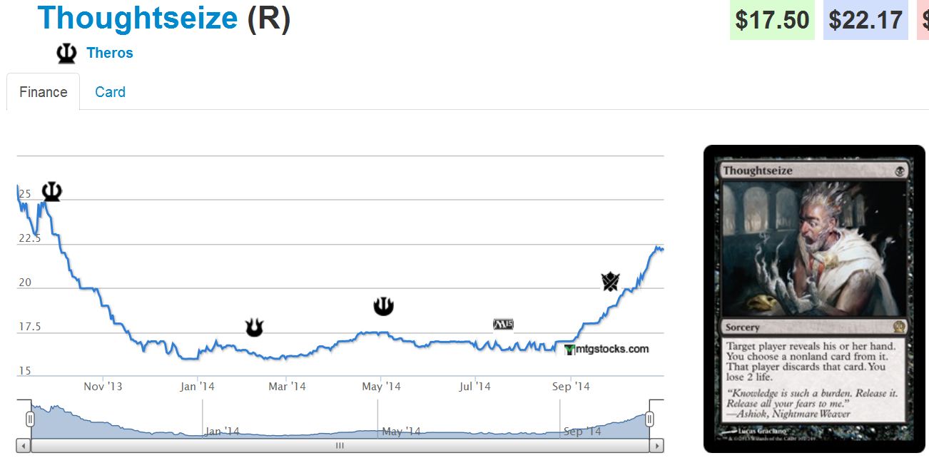 Turning back to the card in question, I do believe Thoughtseize is fairly immune to sudden price fluctuations. But stating the card is not like a stock is perhaps only partially true. There are many similarities between the two if you look at the right comparison stock.