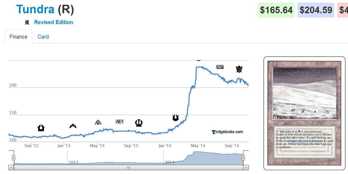 Stalwarts definitely have a place in anyone’s diverse portfolio. Dual Lands are another prime example. But they’re not always going to provide explosive growth without major shifts in Magic’s structure (e.g. creation of a new format like Modern). Therefore they shouldn’t make up your entire portfolio because you’ll not really outperform the “market”.