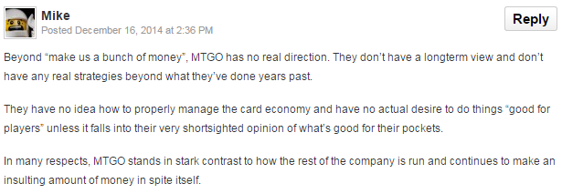 The part that stood out to me was this: "MTGO stands in stark contrast to how the rest of the company is run."Ā How spot-on is this statement?