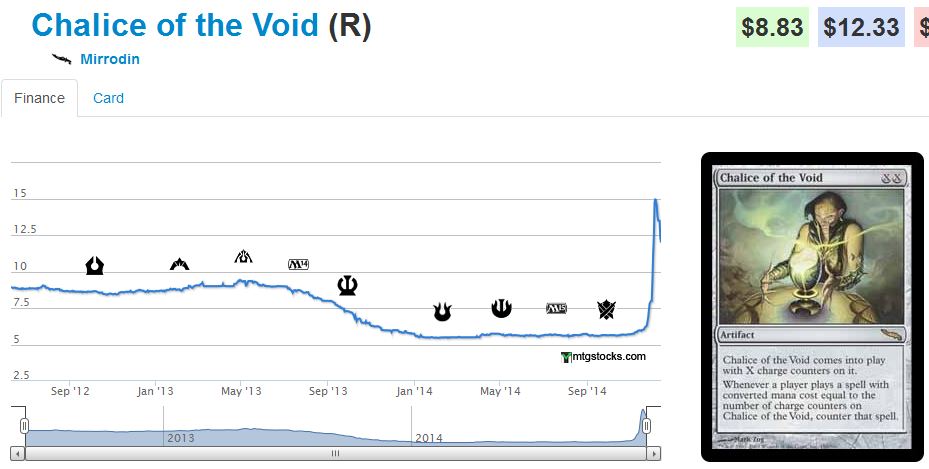 Not long ago I noticed the sudden resurgence of Chalice of the Void in Legacy. What’s more, the card also appeared in the GP Madrid Top 8, which was a Modern event. The card doesn’t stop Treasure Cruise itself, but it sure hinders decks from playing all their one mana cantrip spells.