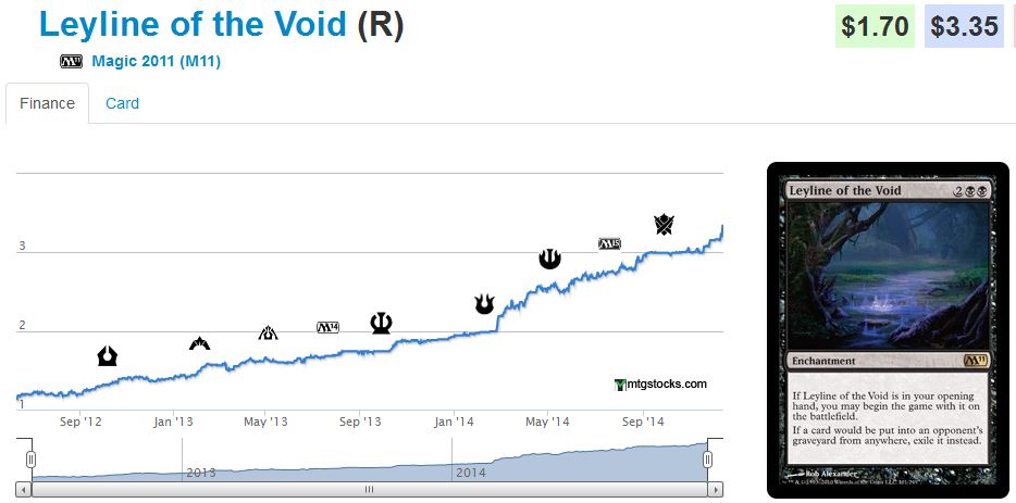 Throughout the past week I noticed another interesting trend on mtgstocks.com. Has anyone else noticed that Leyline of the Void has been an “Interest” a number of times in a row now?
