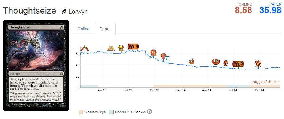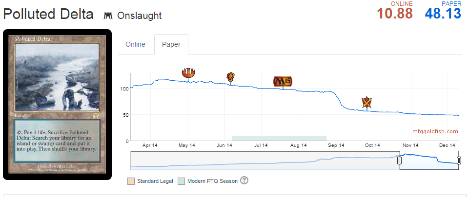 As for picking up Modern cards in the next six months: there may be opportunities that are absolutely worth taking, but I'm going to be far less aggressive picking up cards for the format. We may have until May for this set to be released, but many cards dipped in the months leading up to Modern Masters—we have a savvy community and it's not hard to guess what is being reprinted. Don't turn a blind eye to the chance to make money, but give a little extra scrutiny to Modern specs as we move forward.