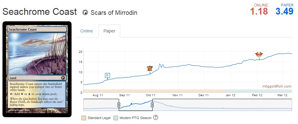 However, if the competitive-to-casual ratio remained the same this wouldn't hold true. If I have 300 players in my area but only 50 competitive players who want the lands then the demand for the tournament staples should be the same if I have 3000 players in my area and 500 competitive players.