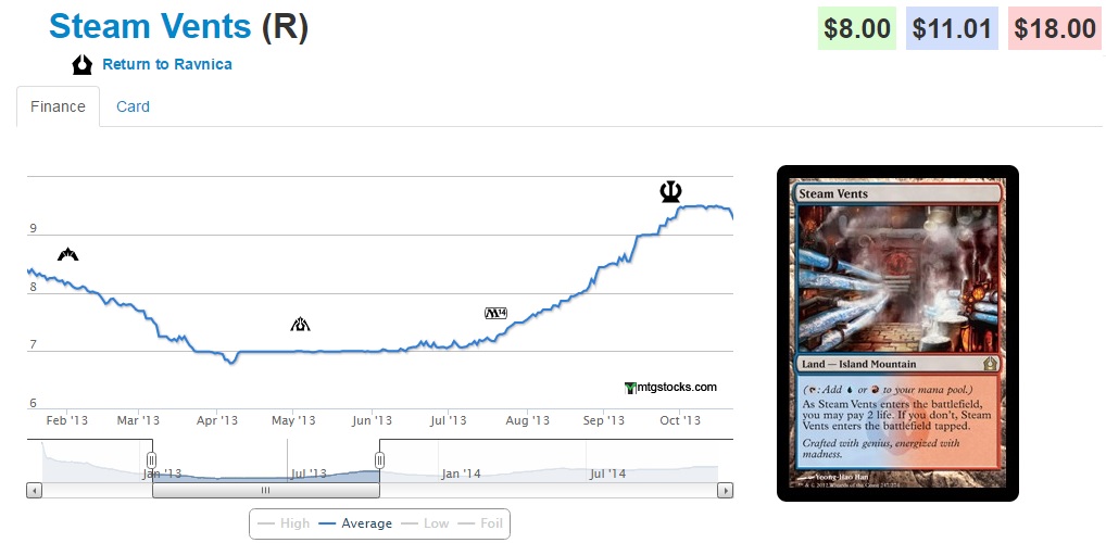 This being the case, I'm no longer going to just simply hoard all the casual cards at the cost of trading them at their current value for more desirable cards. Now, I'm not saying you shouldn't look at your casual cards differently. For example if someone asks me for a set of the Gatecrash Primordials, I'm not going to price them at the current TCG-Mid, instead I'll use that and add a profit I'm comfortable with and explain my reasoning. If my trade partner accepts that then the trade can continue; if they don't, then I just hold onto my Primordials until they go up or get reprinted.