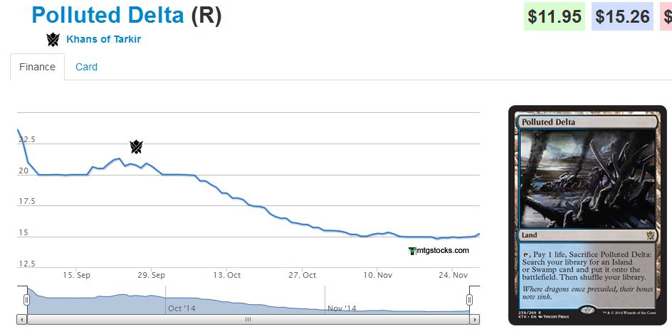 - Looking at their charts on mtgstocks.com, I believe Khans fetches are finally stabilizing. They seem to be moving more rapidly on Star City Games, and foil copies sell out often. Currently SCG is sold out of foil Polluted Delta with a price tag of $99.99.