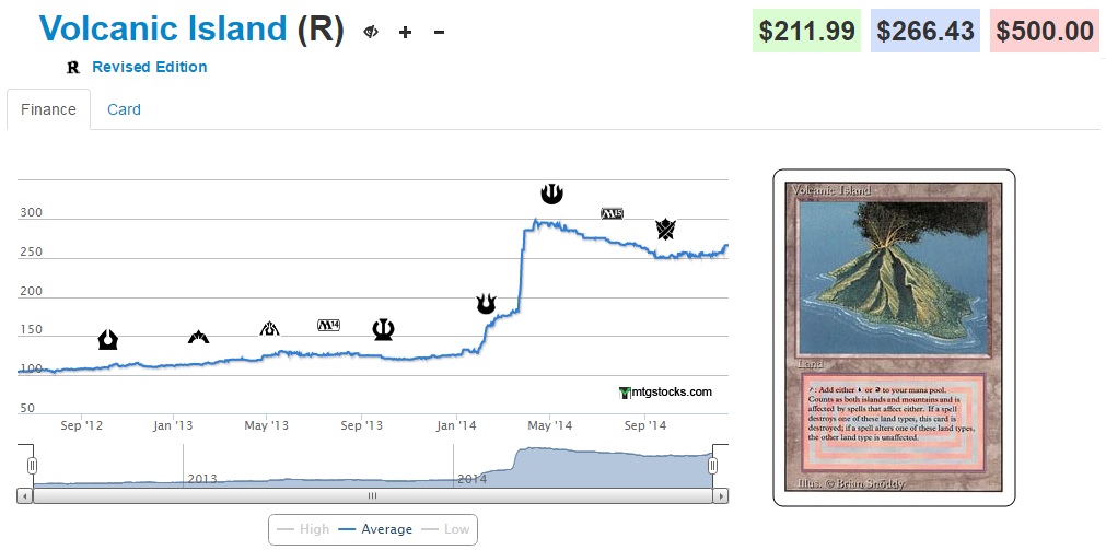 #1 Volcanic Island (+4.81%) - Not surprisingly the #1 most commonly played dual land in Legacy shows strong positive growth. The utter dominance of both Jeskai Stoneblade and U/R Delver variants in the format (as well as a recent resurgence in RUG Delver, brought about by my friend Daniel who took 2nd at SCG Atlanta) has really pushed the tempo strategy to the forefront of the format.
