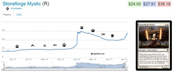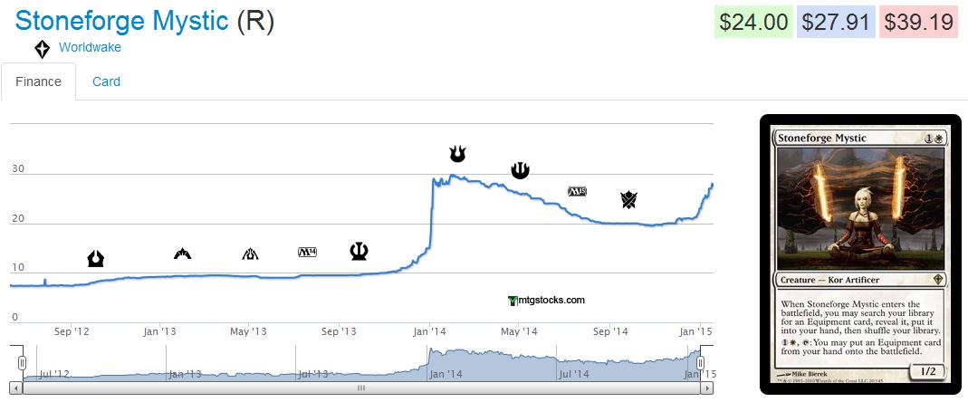 In many cases, this was an accurate thesis. I specifically called out Dual Lands as strong targets, and David’s email last week indicated some of these are finally bottoming. Later I called out Stoneforge Mystic as a strong pick-up. That certainly panned out as well: