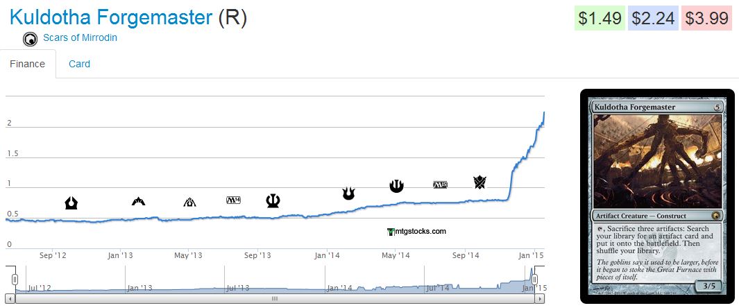 Kuldotha Forgemaster is another such example. Again we have a very powerful card that has demonstrated value in Commander formats, with a little bit of Eternal play. As a result, the card has surged in value from $0.50 to $2 in a few short months.