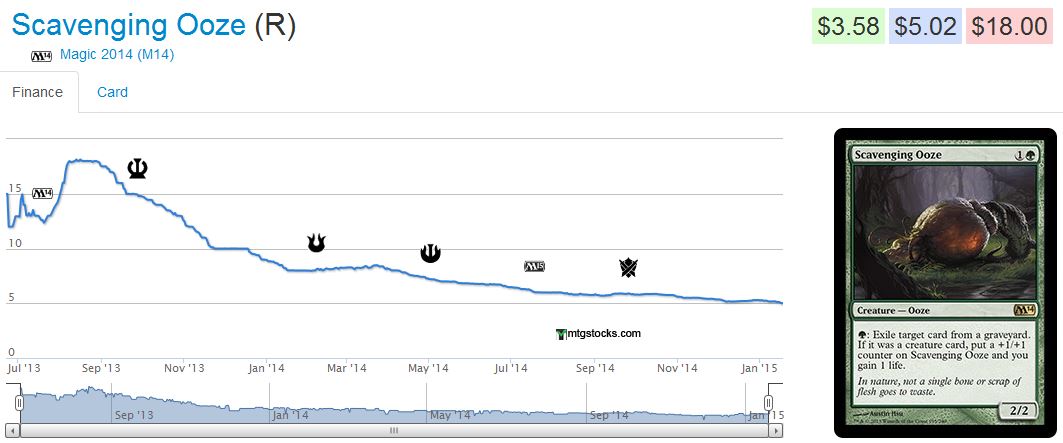 Conversely, if losers have a downward trajectory and there are no anticipated catalysts ahead, why hold onto them? While it is always painful to eat losses, we shouldn’t let our entry price influence what we sell and when. It may take five years for Scavenging Ooze to hit $10 again. And let’s face it--by then, it could be reprinted in an Event Deck and in Modern Masters 2019.