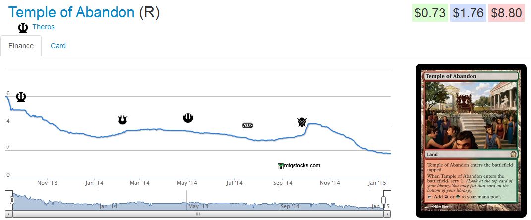 The same trajectory applies to some of these Theros temples I’m sitting on. Temple of Abandon is probably my biggest disappointment.