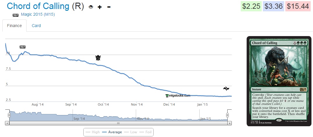 This was an M15 rare (a relatively unopened set, by today's standards) and it was player created, so I was a fan of picking it up in trade at it's old price. Less so at the new one, though at sub $5 there's still room to grow.