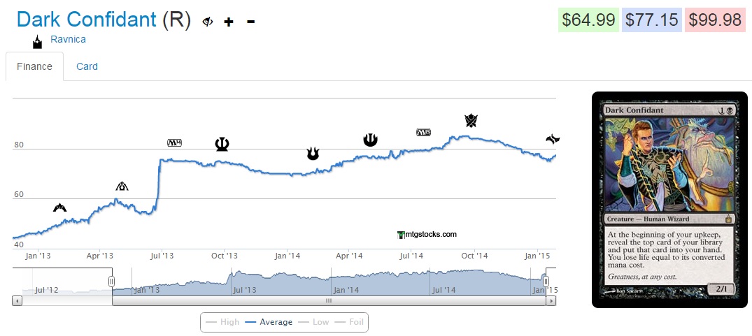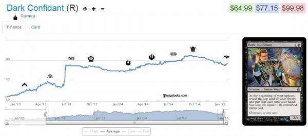 #5 - Dark Confidant (+1.69%) - Oh how Bob has patiently waited in the shadows while Treasure Cruise flaunted it's "no pain" card advantage. He remembers that greatness comes with a cost and now the rest of us are remembering it too as he jumps back to Modern's best form of continual card advantage.