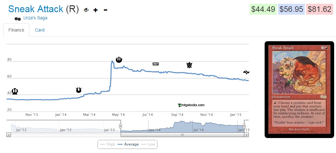 #4 - Sneak Attack (-1.79%) - This one doesn't honestly make a lot of sense. With the banning of Treasure Cruise, I fully expect people to jump back on the Sneak and Show bandwagon as their biggest challenge was beating a deck that stuck a cheap, efficient threat on turn one or two and then protected it and/or interfered with the Sneak and Show gameplan with a bevy of cheap counterspells.