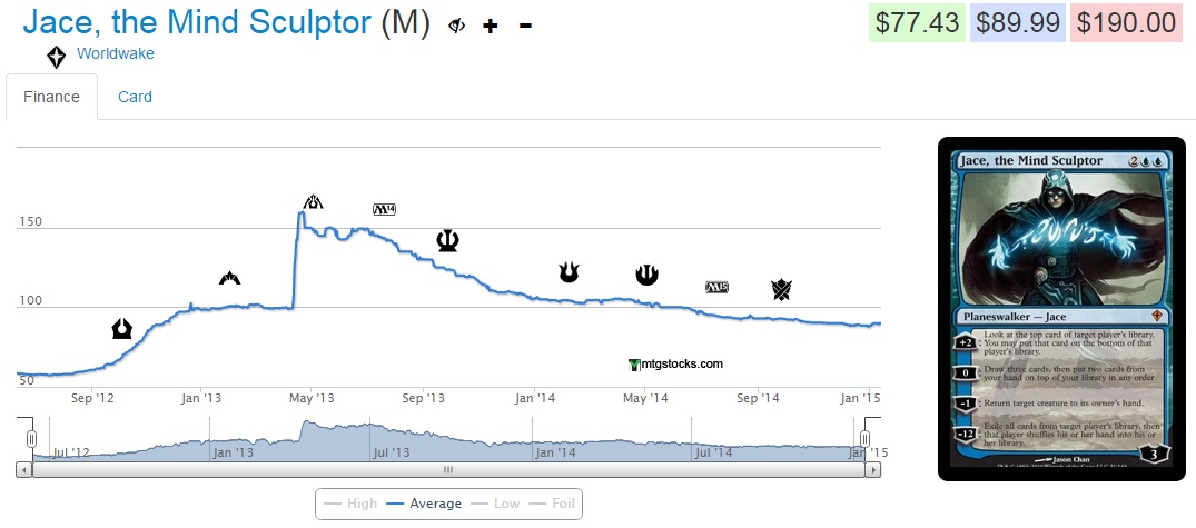 1) I wrote a couple weeks ago how I saw cards finally bottoming. It does not at all surprise me that Duals and Jace 2.0 are on a rebound. I expect this trend to continue. Also, look at Stoneforge Mystic – that one has been on a terrific rebound, and will be $30+ very soon.