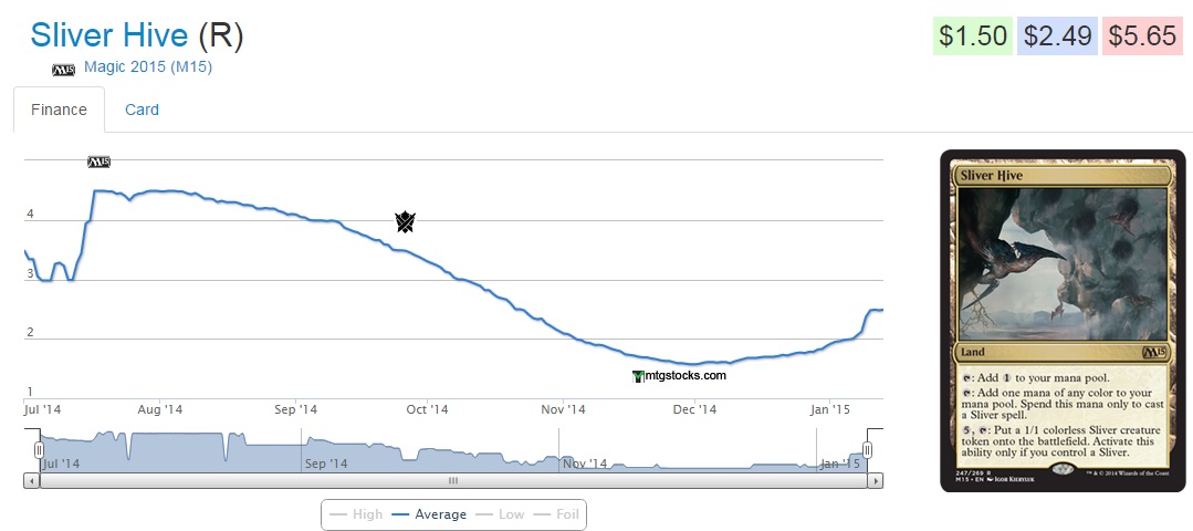 It is both a mana fixer and a card advantage machine (in a land) as making a sliver per turn can be brutal with enough synergistic slivers on the battlefield. It's a single print run rare in a relatively un-opened set makes it a very attractive speculation target. I expect it to continue its upward trend as we move further and further away from M15.