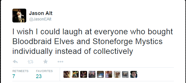 If you lost money on Bloodbraid Elf by buying at the peak of the hysteria, I don't feel sorry for you.