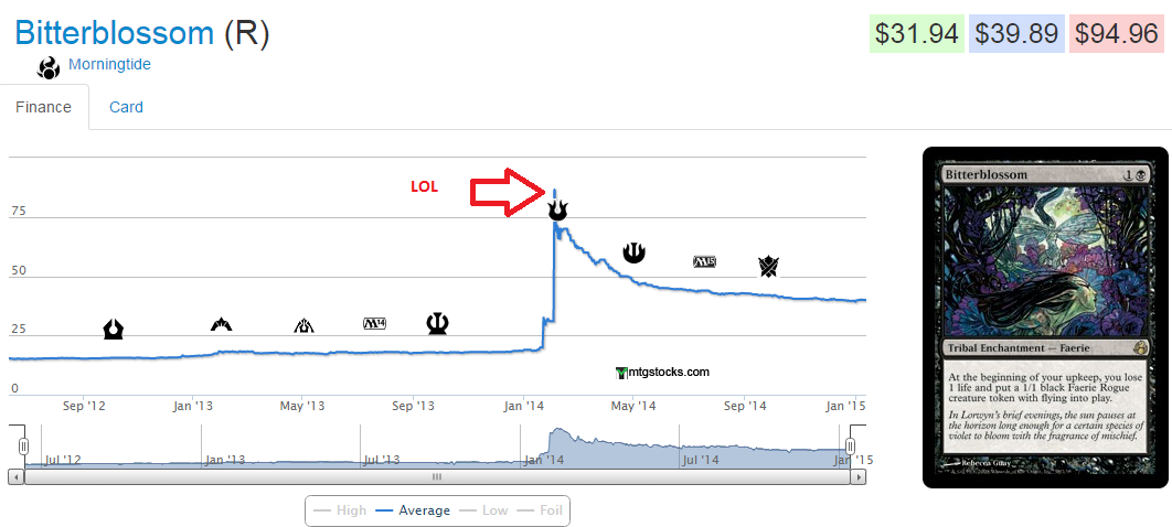 If you had copies of Bitterblossom and were ready to list them because you bet your money that it would be unbanned (it didn't need to impact Modern at all to hold double its pre-spike price, which is depressing and makes things harder to predict in the future) you made out, but everyone who ordered them for $18 and had their order cancelled bit it just as hard as the people who paid $80.