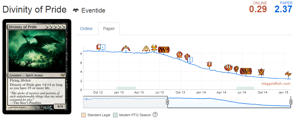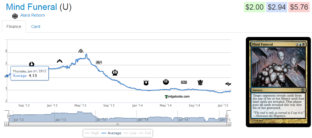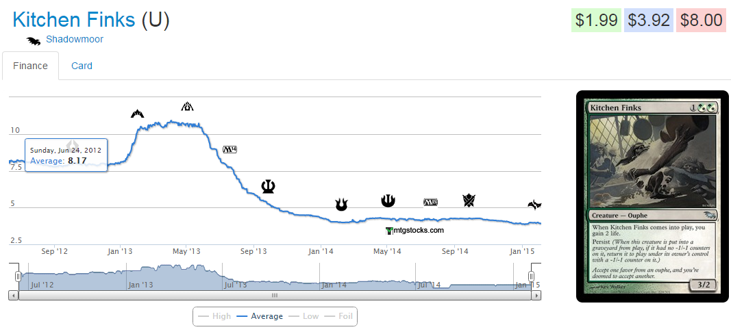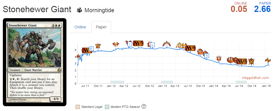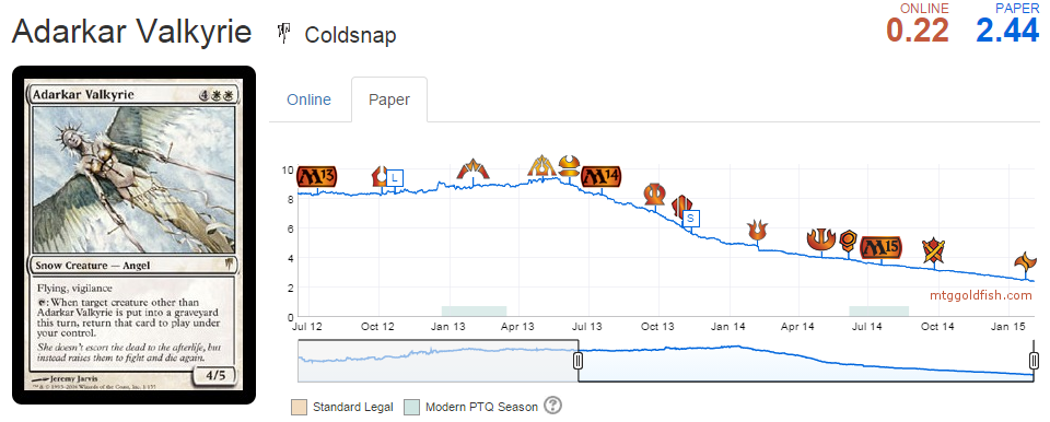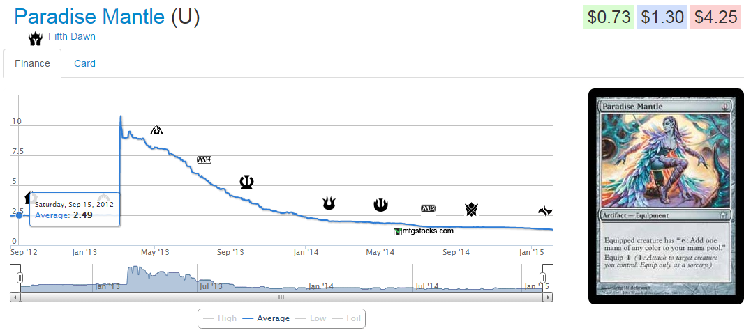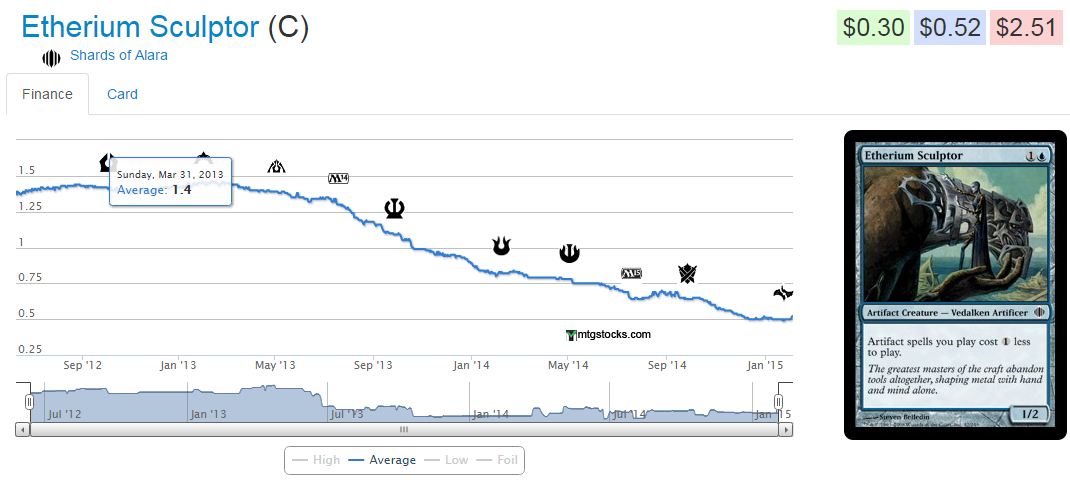 Although we may be able to apply the lessons we learn here to this year's iteration of MMA, keep in mind that, as Anthony Capece eloquently explained on Brainstorm Brewery, "Past performance does not indicate future results." Modern Masters 2015 will have different cards, a different print run, a different MSRP, a different going price—the sets may ultimately end up being pretty similar, but so many of the circumstances are different that we can hardly draw solid conclusions based on what happened back in 2013.